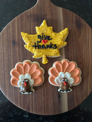 Let's Talk Turkey Time Sugar Cookies with Buttercream - Mixture of festive shapes, delivered in a box, $49/dozen