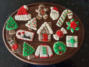 Christmas Signature Sugar Cookies with Buttercream Frosting: 1 dozen mixed shaped holiday cookies. Delivered in a box with ribbon (and love). $49.00 per dozen